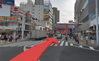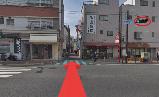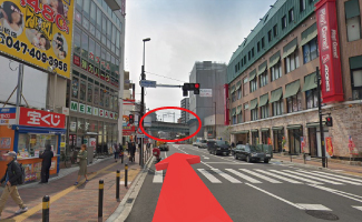 京成船橋駅高架下手前右角にある松屋さんを右折。京成船橋駅からお越しの場合はこの先からご覧ください。